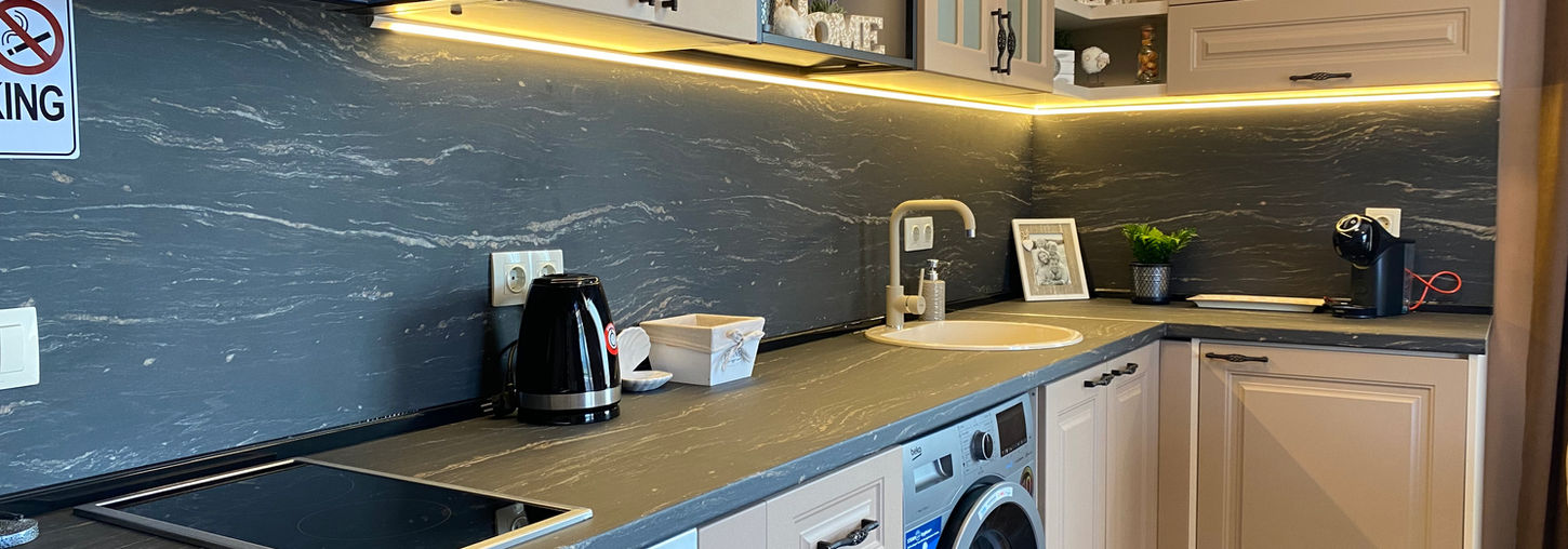 The apartment is brand new and fully equipped for your vacation, it also has a washing machine, coffee machine, refrigerator, smart TV and air conditioners in both rooms. The terrace is spacious with a view of the mountain and the city. The apartment also has free parking.